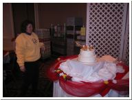 The florist (Floral Impressions) decorating the cake with flowers |