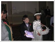 Our Wedding Ceremony was on February 16, 2002. Since February 14, 2002 was on a Thursday, making it inconvenient for a lot of people to come, we decided to have our Wedding Ceremony and Reception on Saturday, the 16th. The ceremony went well and it seemed as though everyone had a great time. The photos here were taken by Michele Katen. She did a great job. Thanks Michele. If anyone else has photos to share of any part of Marriage and Wedding Celebration, we would enjoy seeing them and would be able to scan them and put them here as well. People with digital photos, can contact Julie and she can provide you with information to upload them to Winston's server.